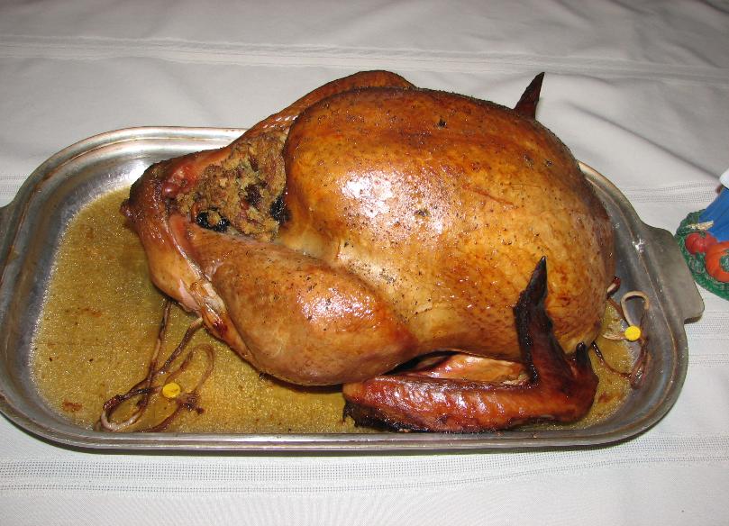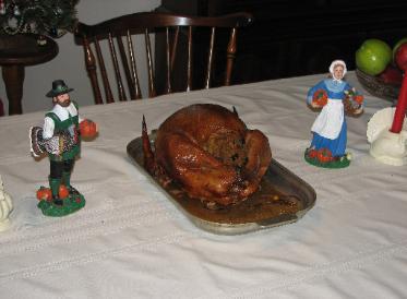 | Getting ready to be garnished, the turkey takes it place on the dining room table. |