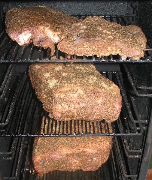 Last glimpse of the raw ribs - covered with our dry rub, they go in naked for the first hour or so.